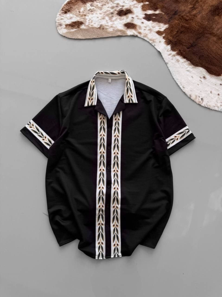 İki İplik Kumaş Baskılı Gömlek - Siyah