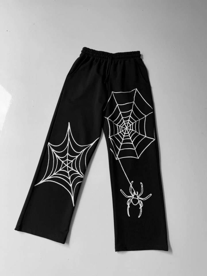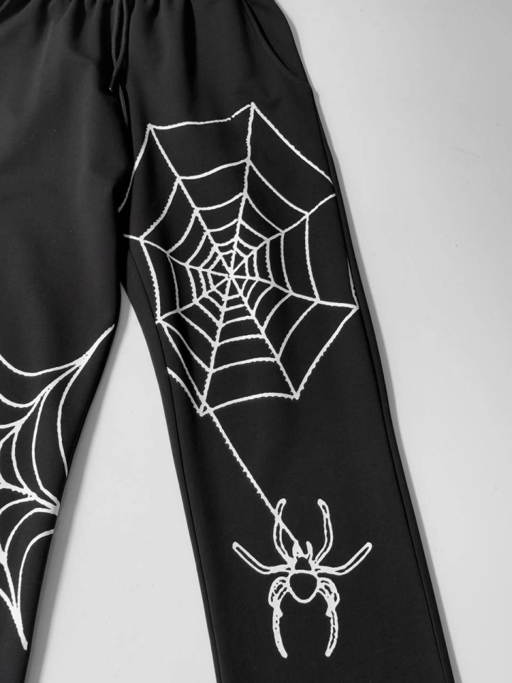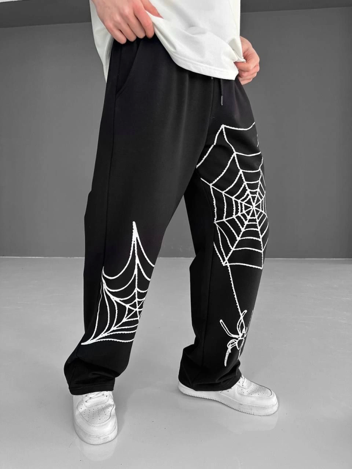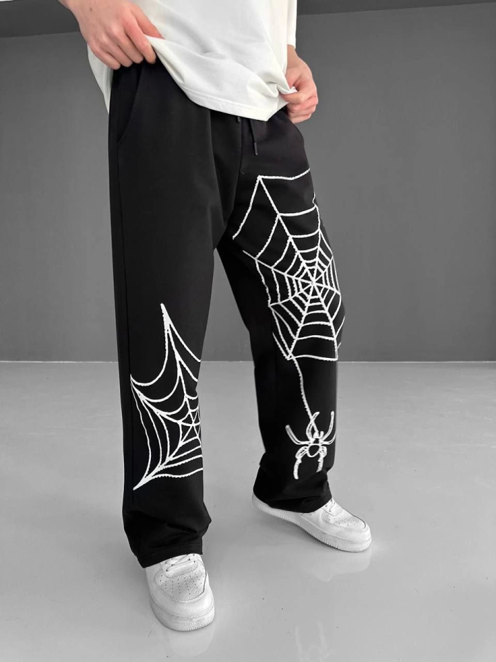 İki İplik Kumaş Örümcek Baskılı Esofman - Siyah