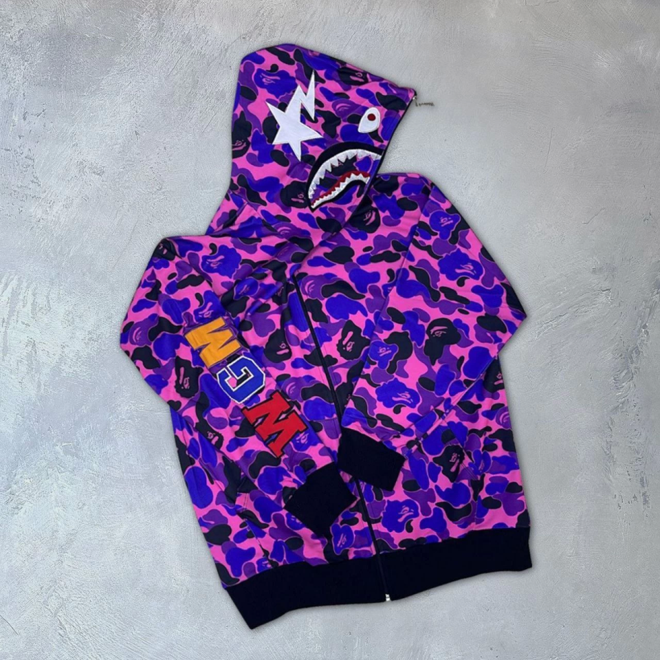 İki İplik Zıp Fermuarlı Nakışlı Kapşonlu Hırka - Mor