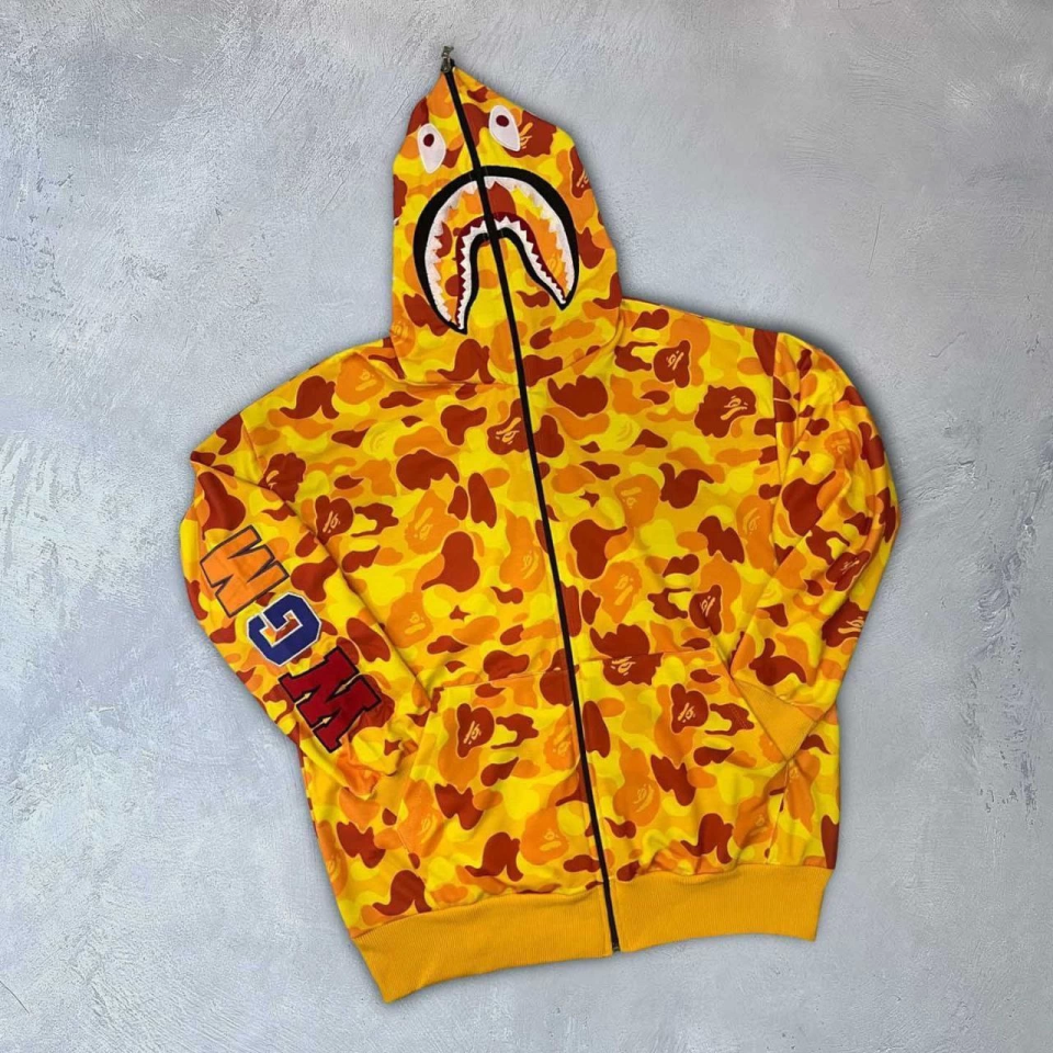 İki İplik Zıp Fermuarlı Nakışlı Kapşonlu Hırka - Sarı