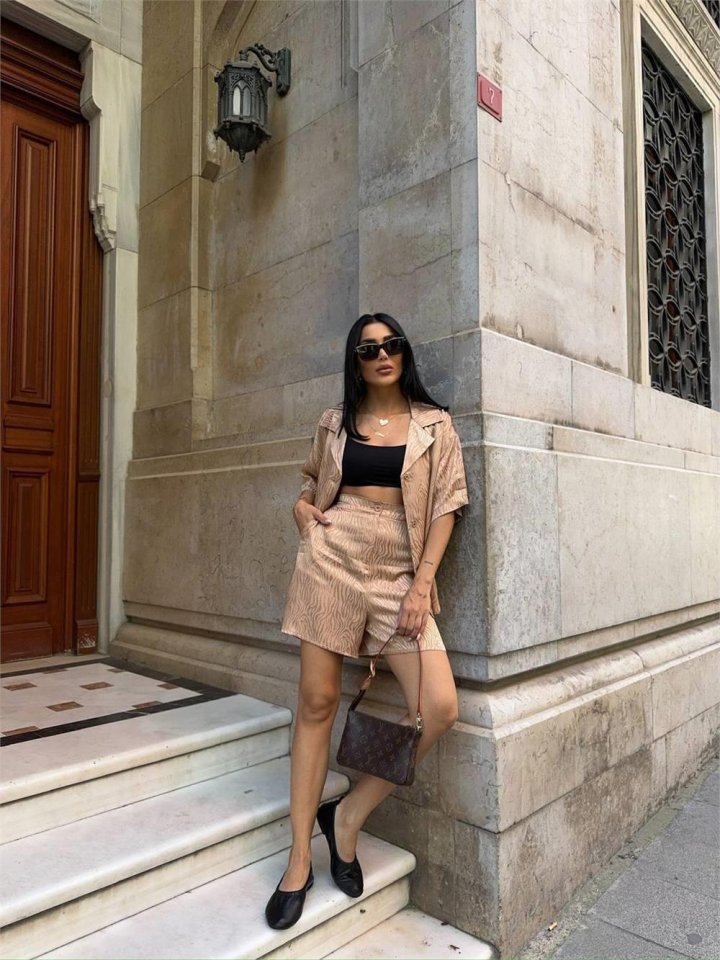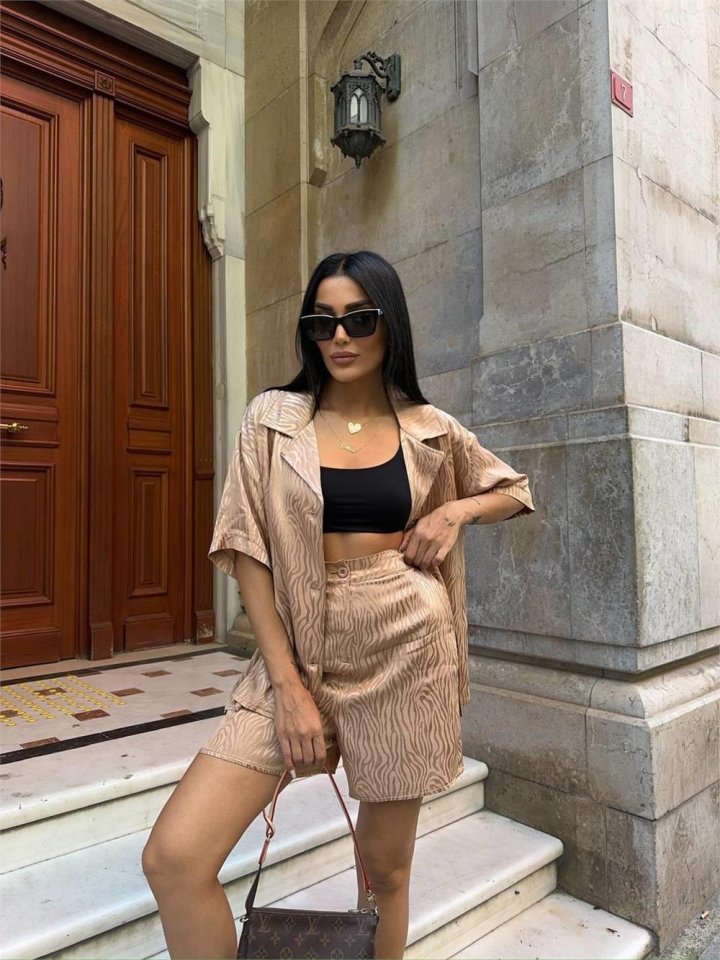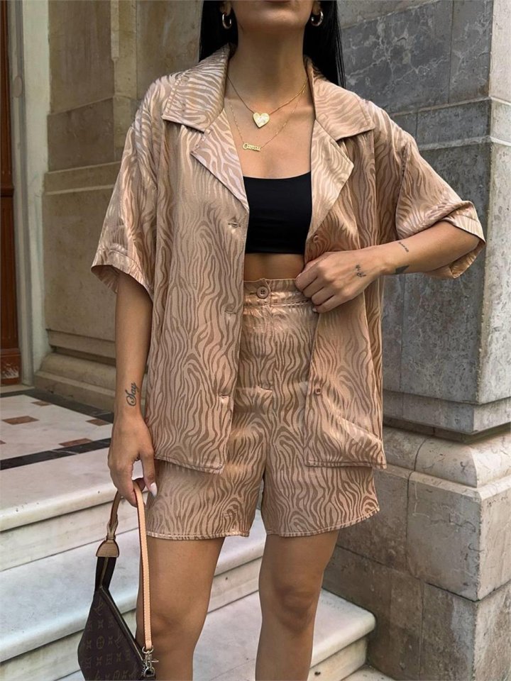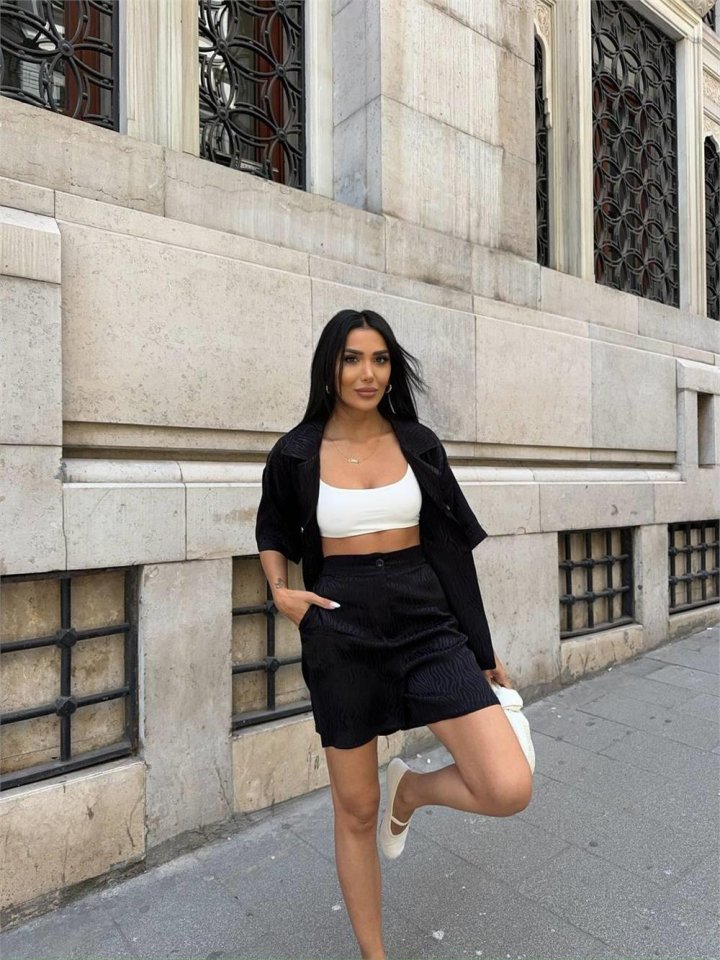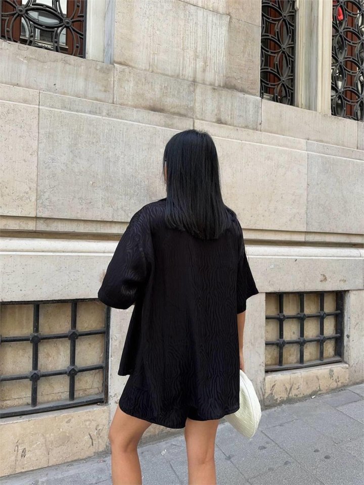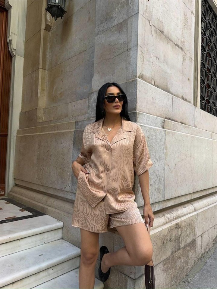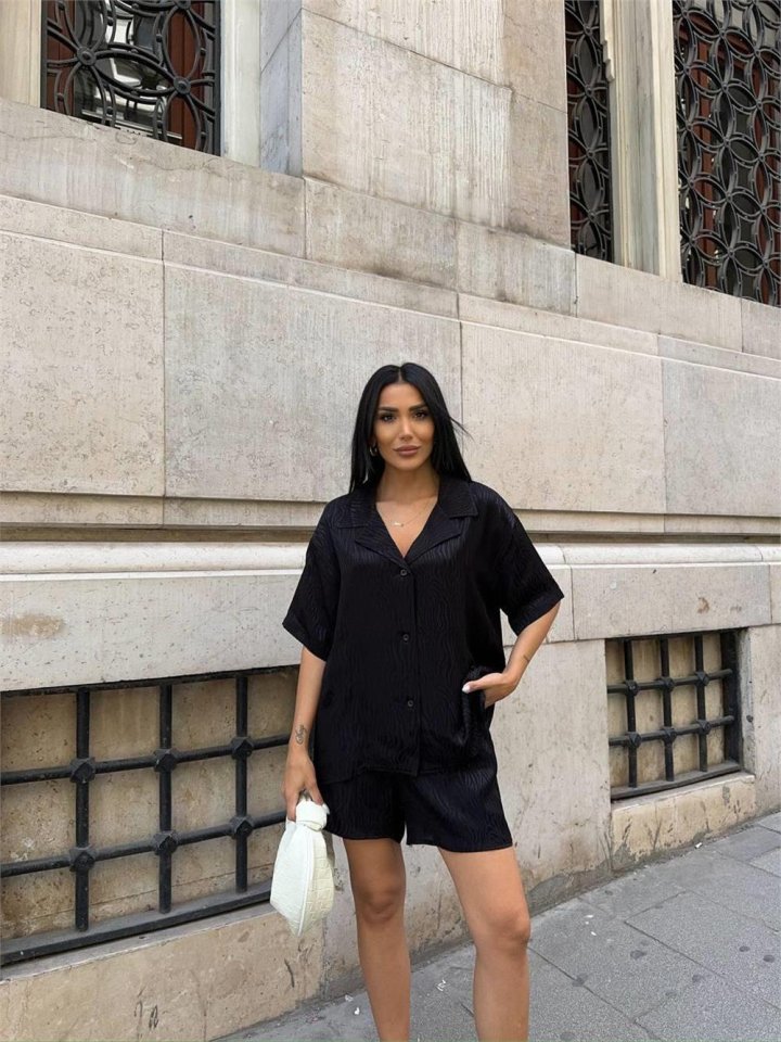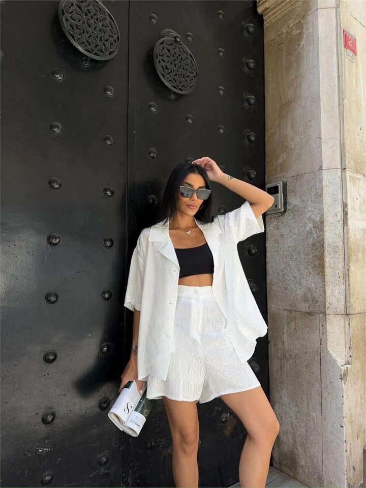 JAKARLI GÖMLEK -ŞORT TAKIM - Beyaz