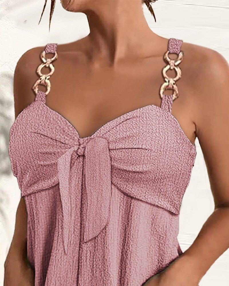 Kadın Askı Aksesuarlı önü Bağlama Detay Salopet şort Tulum