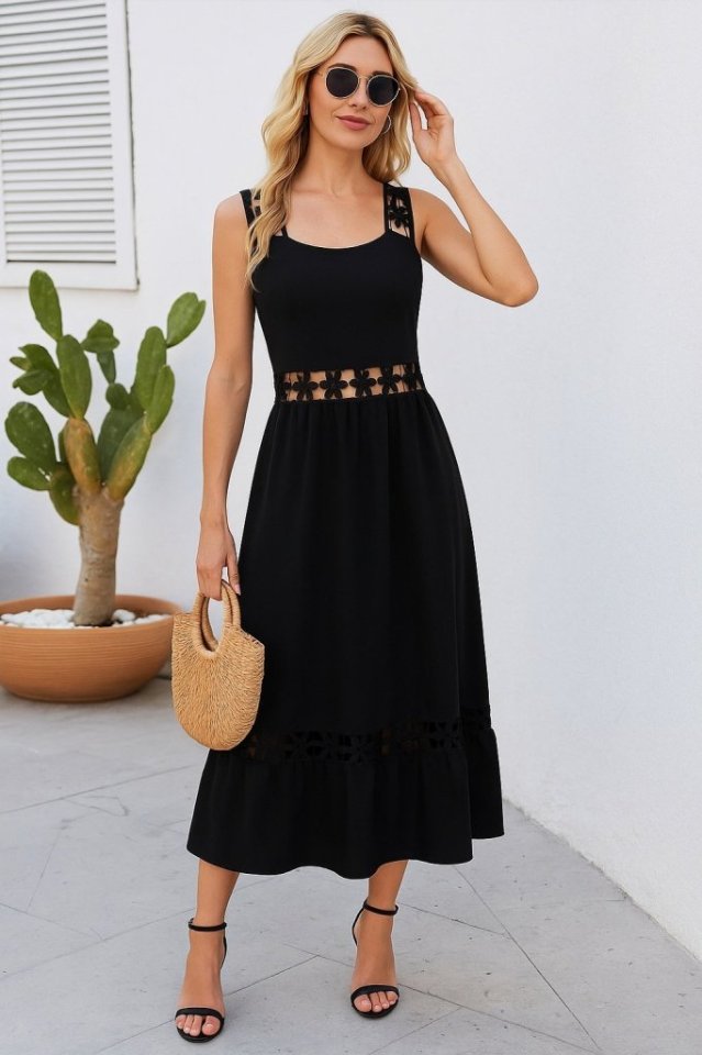 Kadın Askılı Dantel Detaylı Kiloş Janjan Krep Elbise
