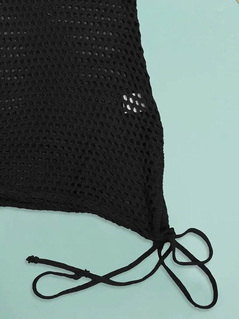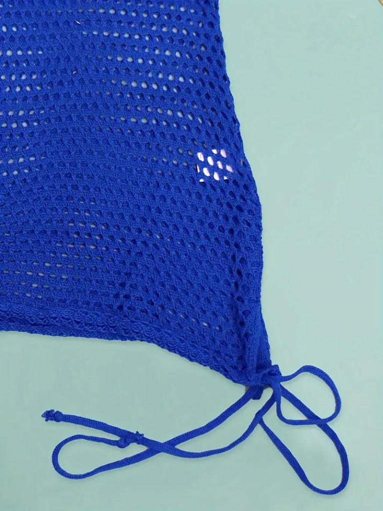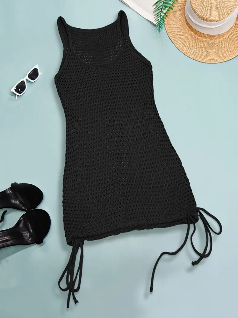 Kadın Askılı Eteği Büzgü Bağlama Detay Delikli örme Triko Pareo Elbise