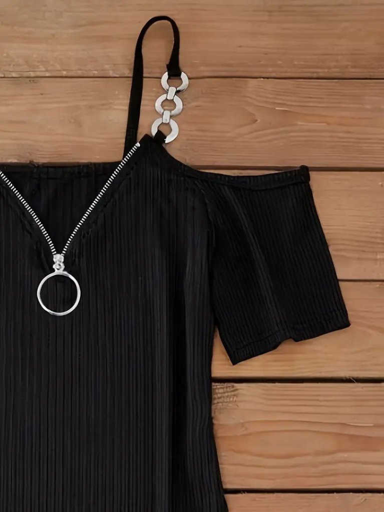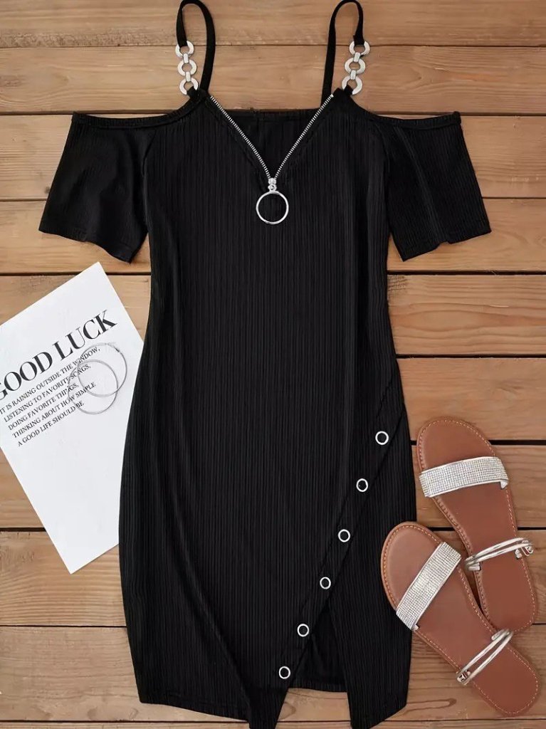 Kadın Askılı önü Fermuarlı Asimetrik Kesim Detaylı Kalın Fitilli Kaşkorse Elbise