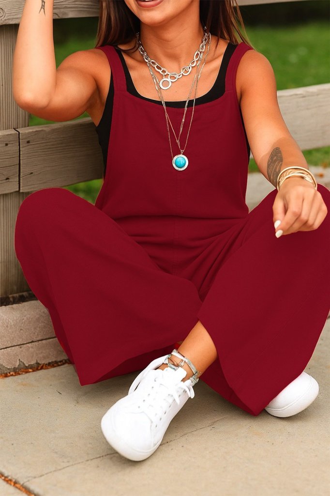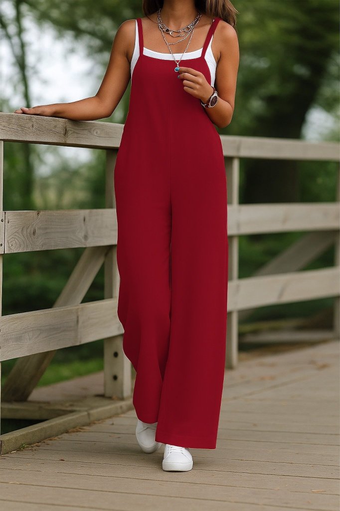 Kadın Askılı Yandan Fermuarlı Geniş Paçalı Valencia Tulum