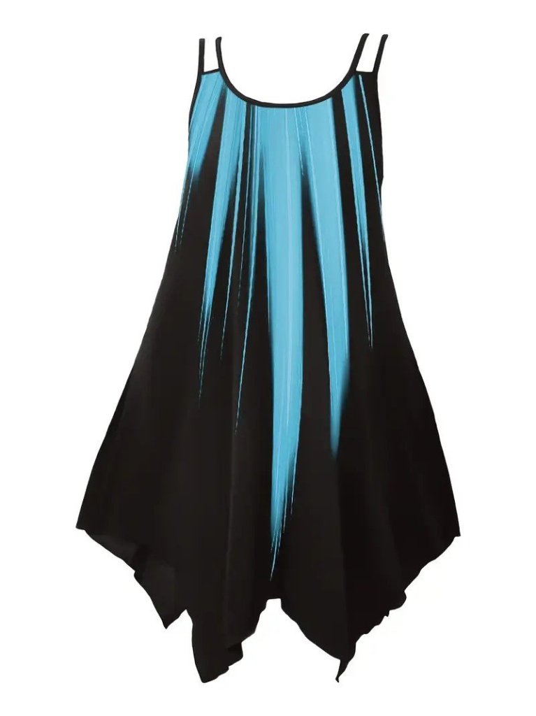 Kadın Askılı Yuvarlak Yaka Asimetrik Detaylı Desenli Süprem Elbise