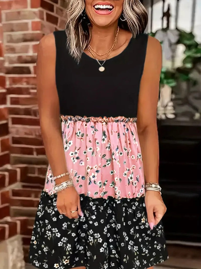 Kadın Askılı Yuvarlak Yaka çiçek Baskılı Salaş Süprem Elbise