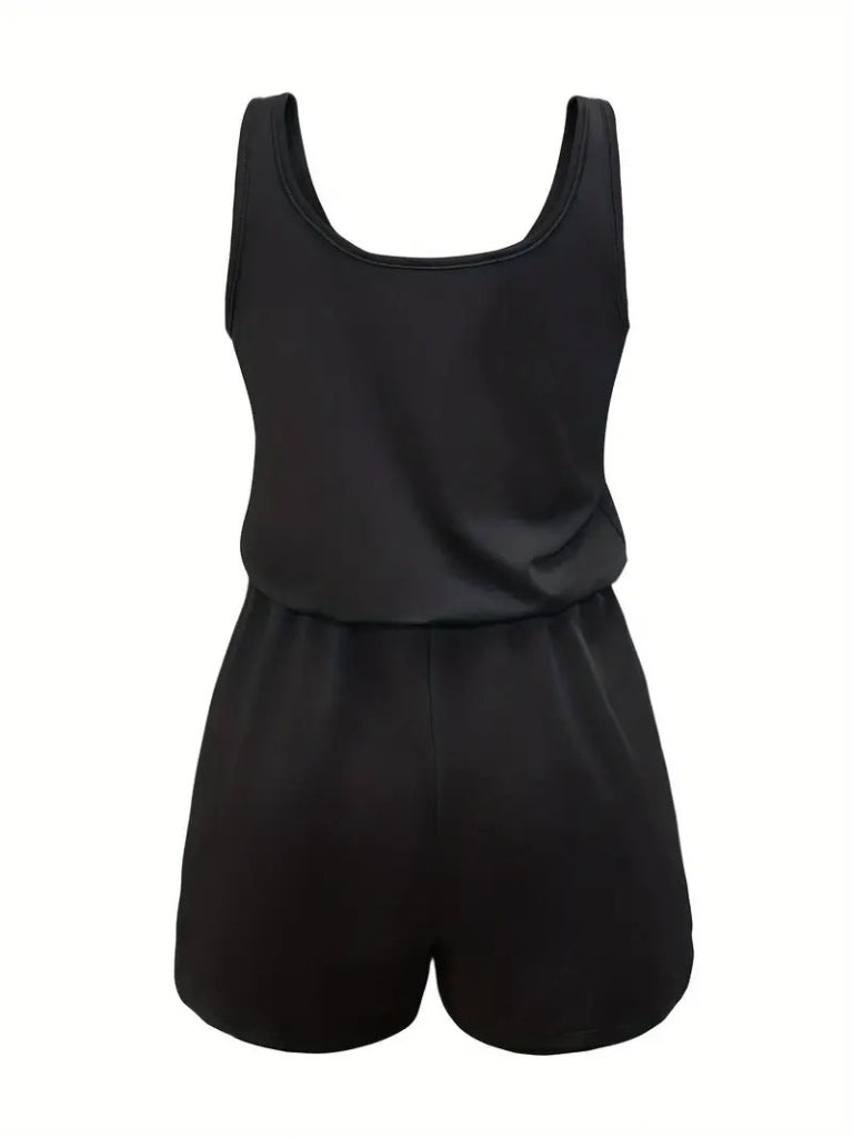 Kadın Askılı Yuvarlak Yaka Lazer Kesim Detaylı Bağcıklı Kısa Viskon Tulum