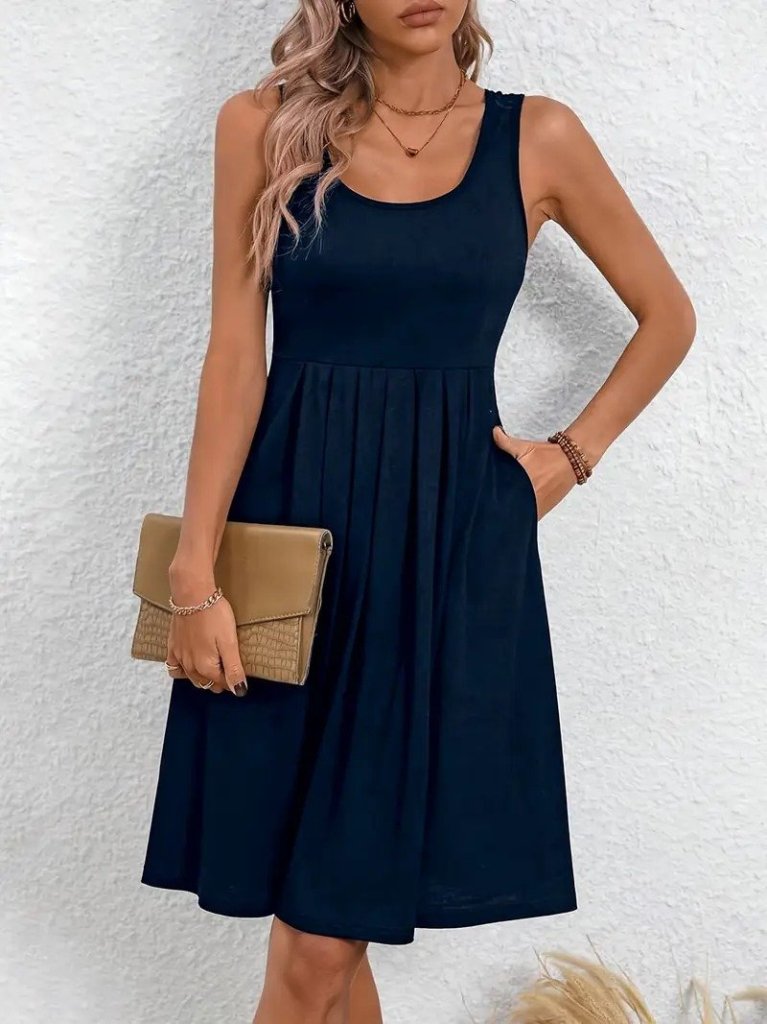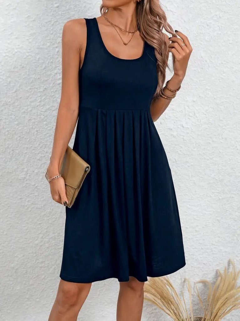 Kadın Askılı Yuvarlak Yaka önden Pileli Viskon Elbise