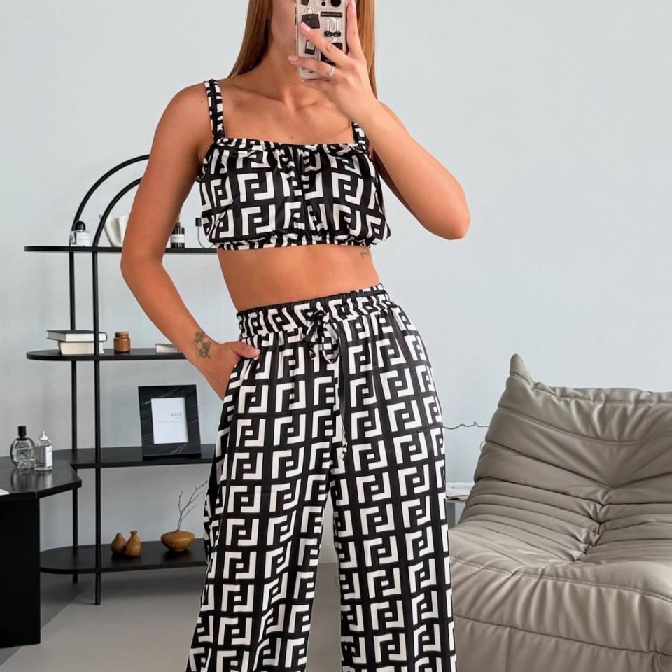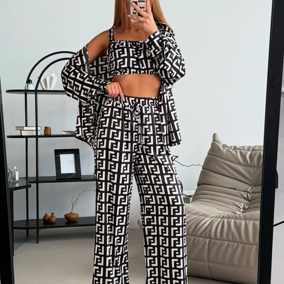 Kadın Bağcık Detaylı Dıjıtal Baskılı Dalgıç Kumaş 3;lü Takım