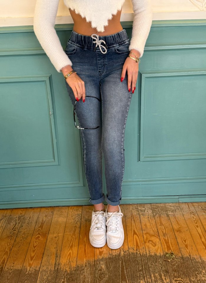 Kadın Belden Bağlamalı Cepli Yüksek Bel Kot Pantolon