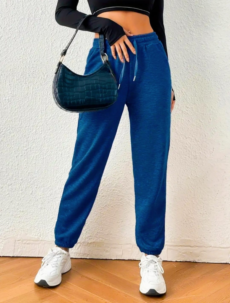Kadın Beli Kordonlu Viskon Iki Iplik Kumaş Eşofman