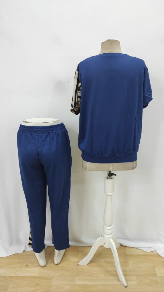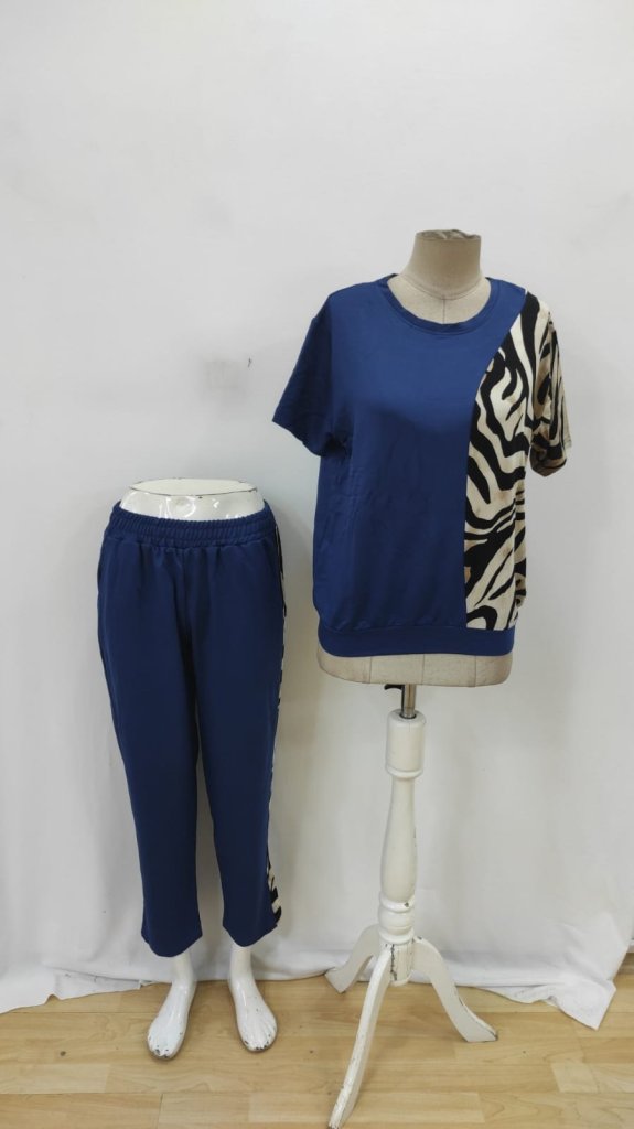Kadın Bisiklet Yaka Kısa Kol Leopar Desen Bluz Ve Pantolon Ikili Takım