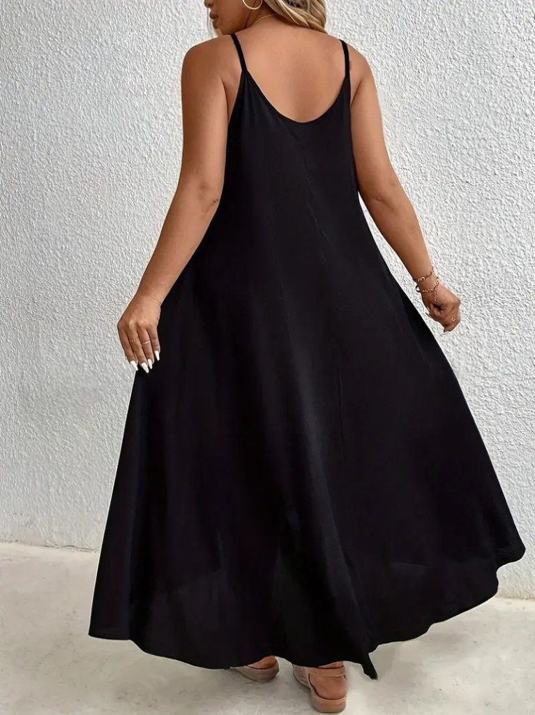 Kadın Boyundan Askılı Damla Detaylı Halkalı Asimetrik Kesim Viskon Elbise