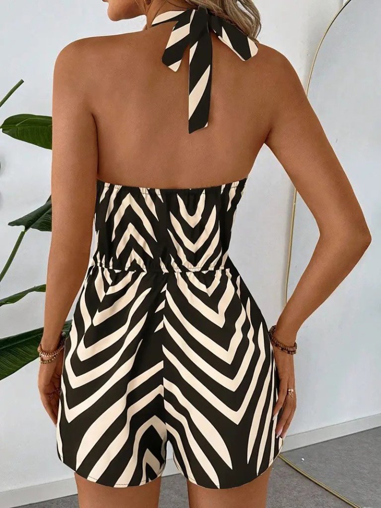 Kadın Boyundan Askılı Halter Yakalı Desenli Süprem Tulum