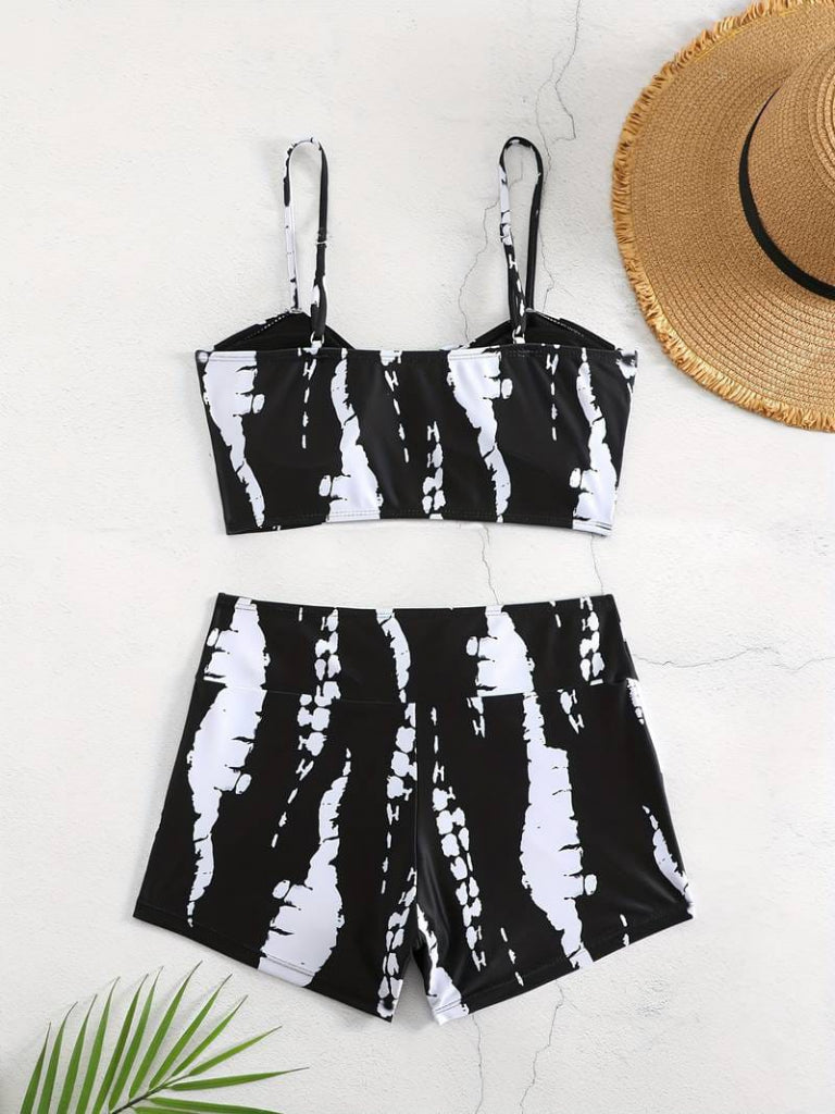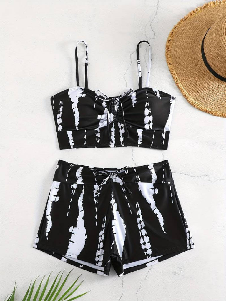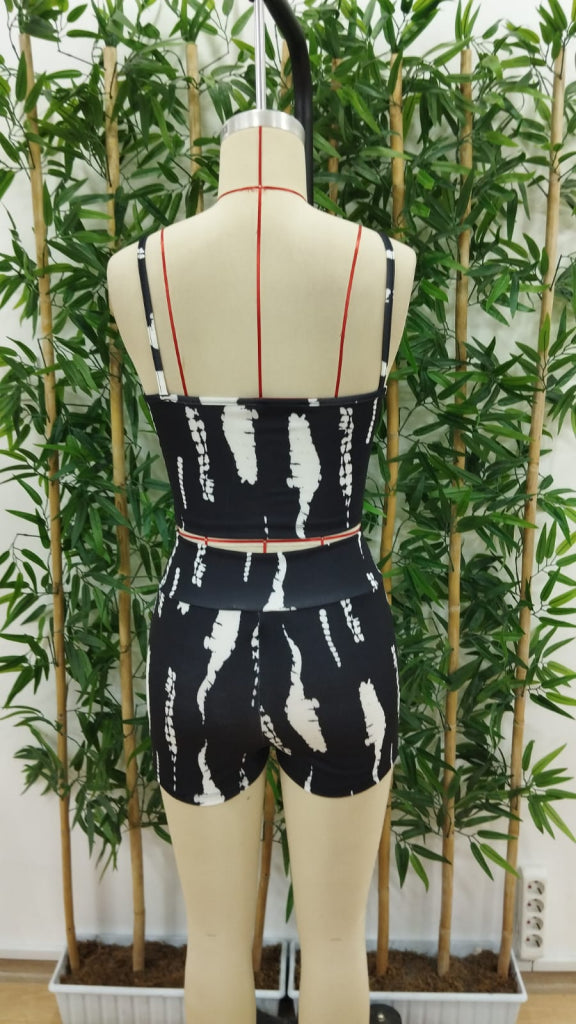 Kadın Büzgü Detay Askılı Crop Mini Tayt Ikili Takım