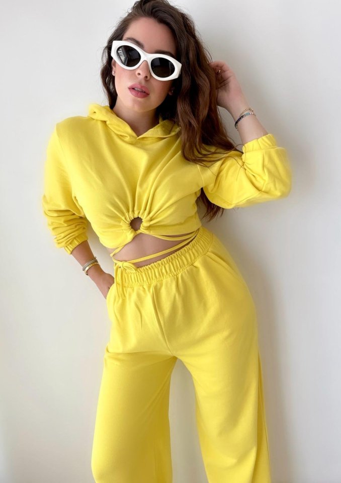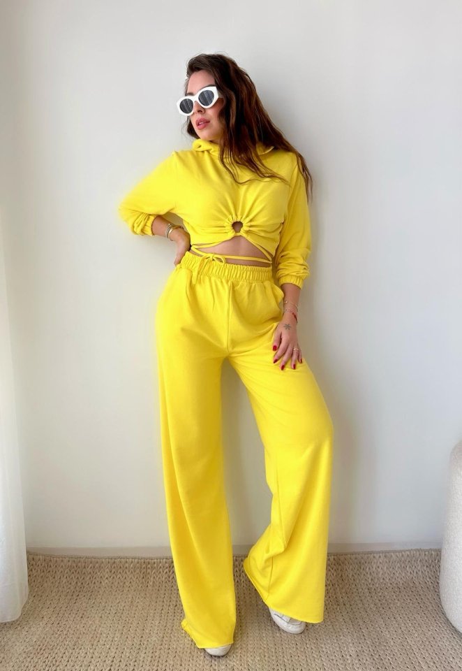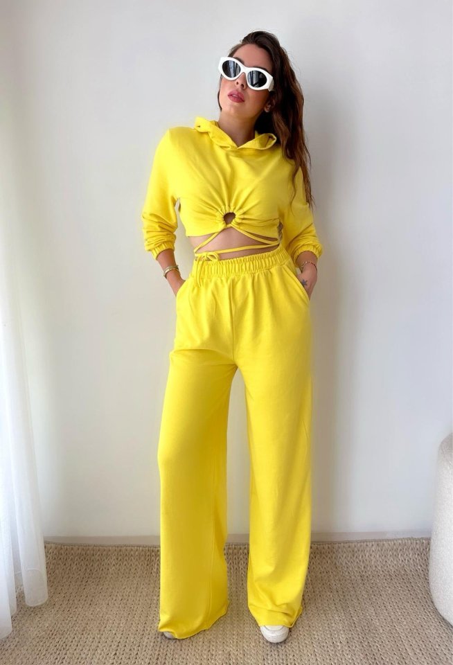 Kadın Crop Bağlama Detaylı Eşofman Takımı