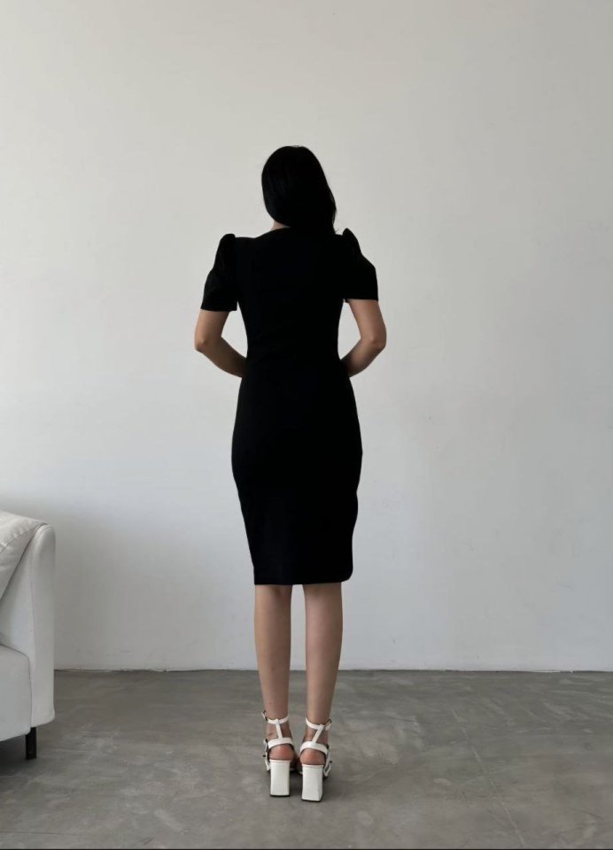 Kadın Dalgıç Krep Kumaş V Yaka Yırtmaç Detaylı Elbise