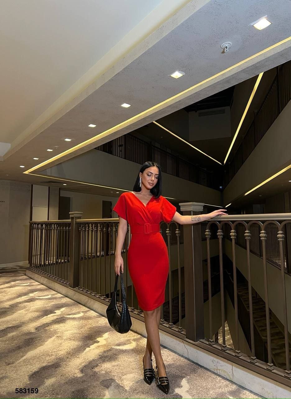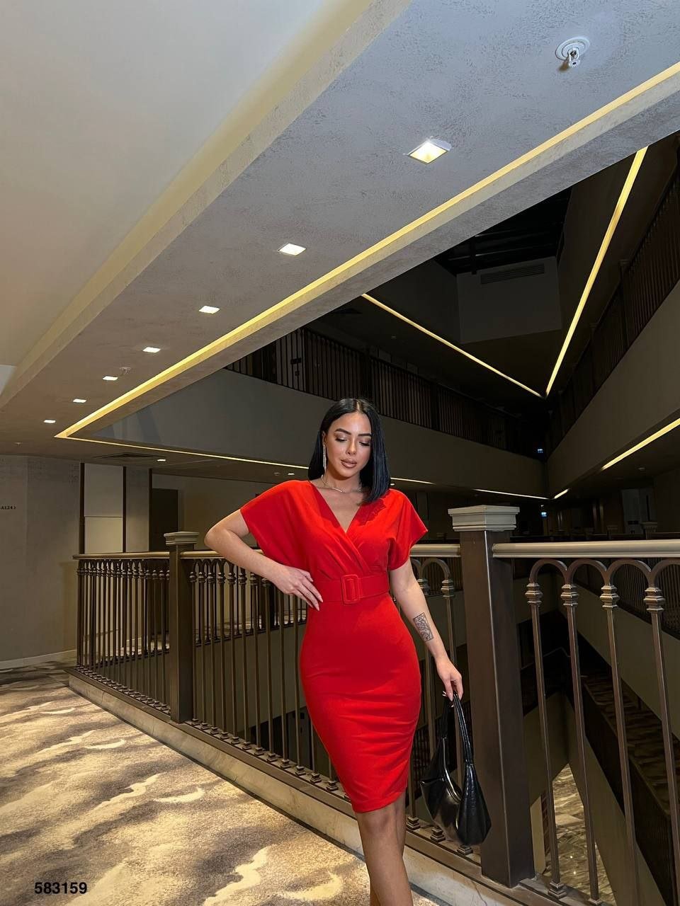 Kadın Dalgıç Krep V Yaka Ve Sırt Dekolte Detaylı Elbise