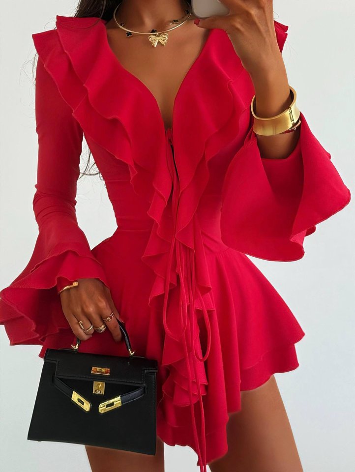 Kadın Dalgıç Kumaş Fırfırlı Elbise