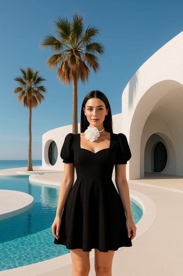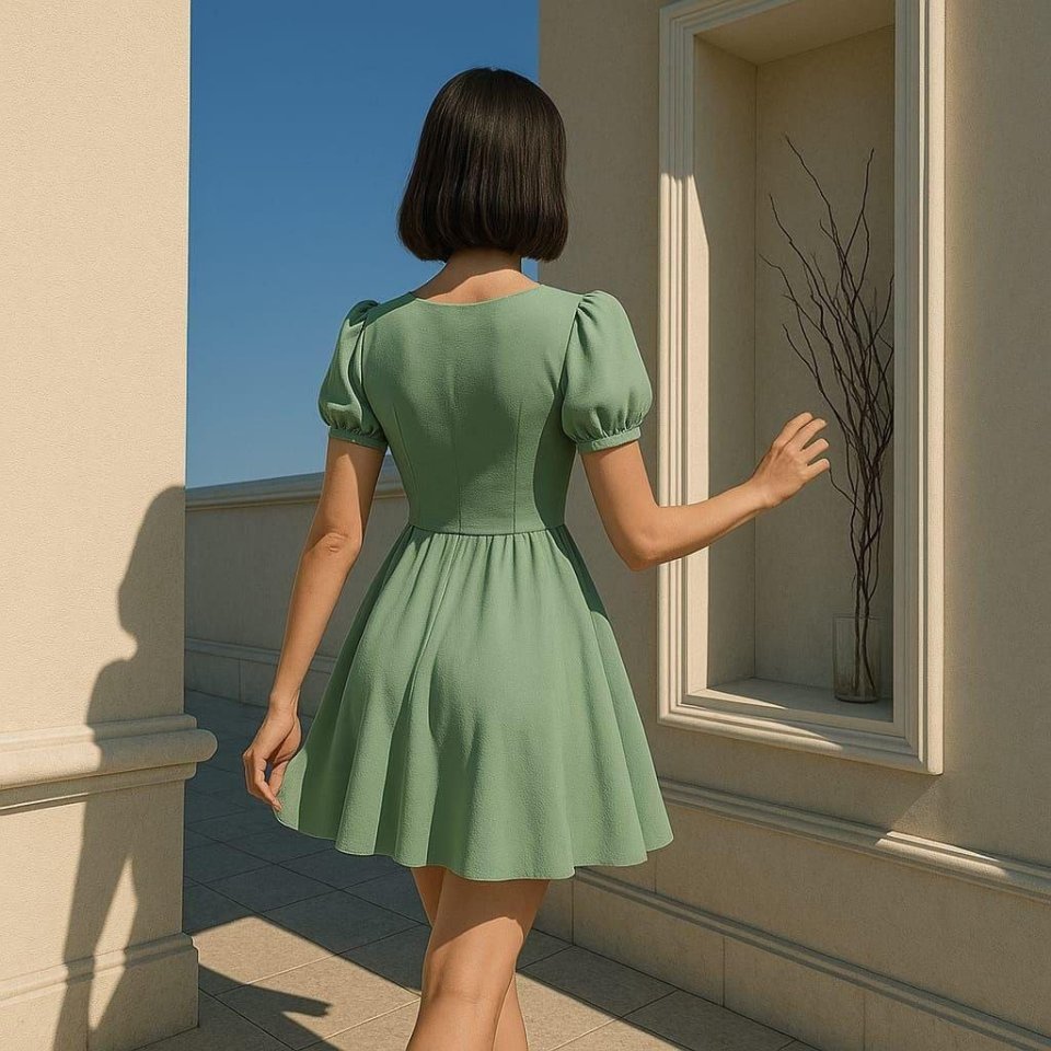 Kadın Dalgıç Kumaş Kalp Yaka Elbise