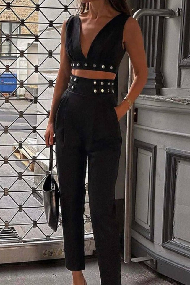 Kadın Double Krep Kumaş Düğme Aksesuar Detaylı Takım