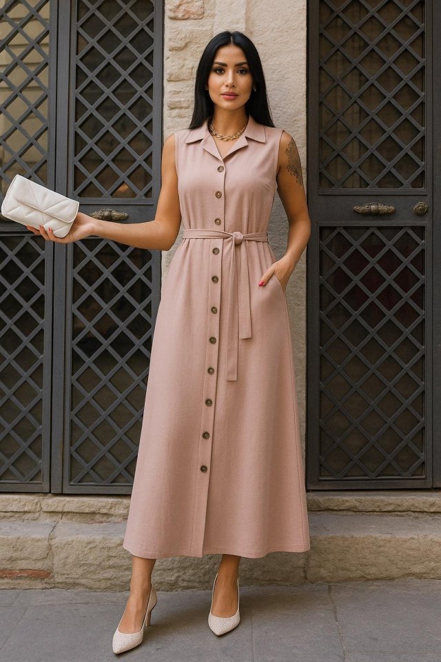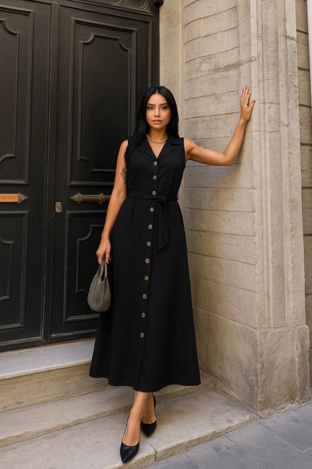 Kadın Düğme Detay Kuşak Dahil Elbise