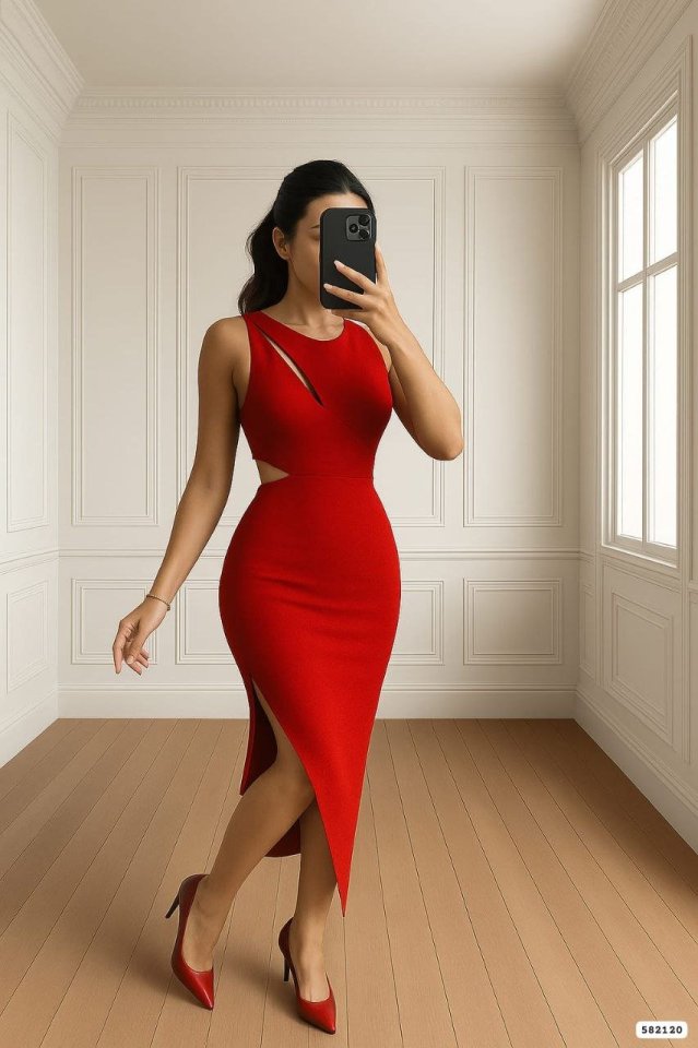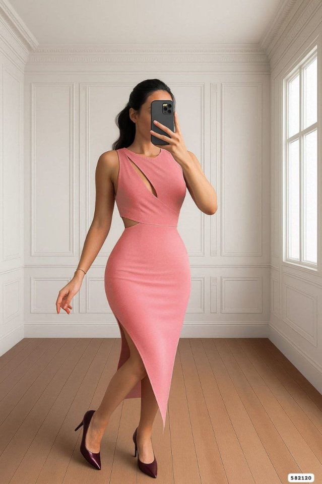 Kadın Goğüs Detaylı Sırt Dekoltelı Yırtmaç Detaylı Scuba Elbise