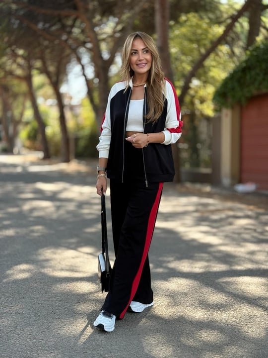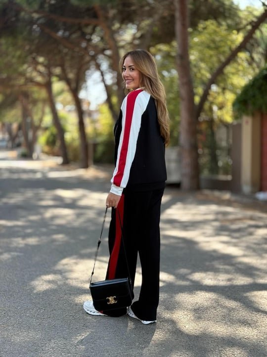 Kadın Hakim Yaka şerit Detay Hırka Ve Bol Paça Pantolon Ikili Takım