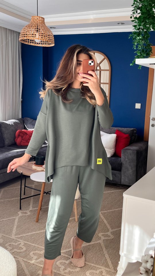 Kadın Iki Iplik Viskon Pamuk Kumaş Arma Detaylı Ikili Takım