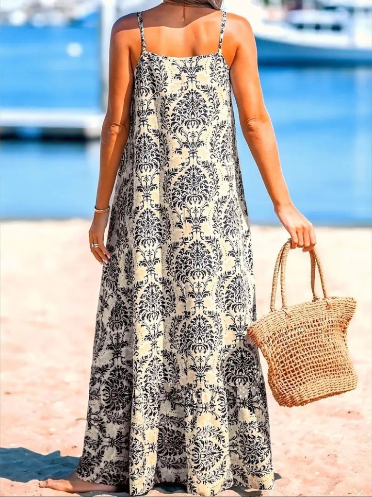 Kadın Ip Askılı Desenli Fırfırlı Süprem Elbise