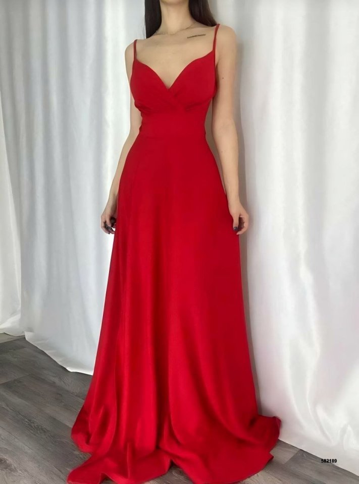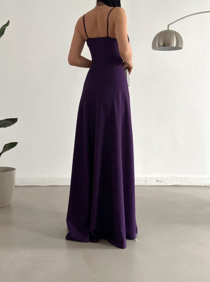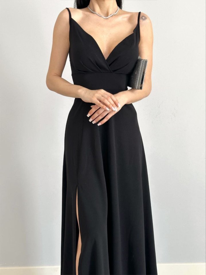 Kadın Ip Askılı Kruvaze Yaka Maxi Boy Abiye Elbise