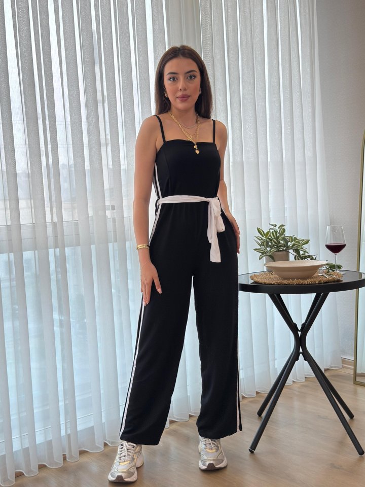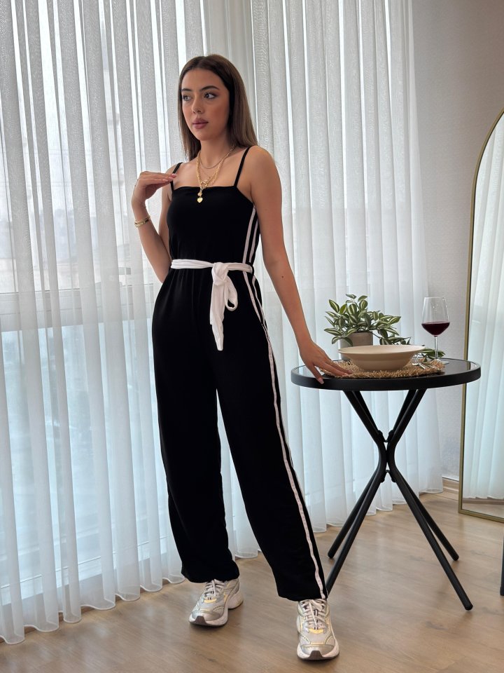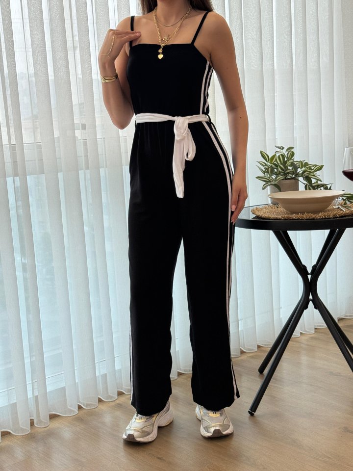 Kadın Ip Askılı Straplez Belden Kuşaklı Viskon Iki Iplik Tulum