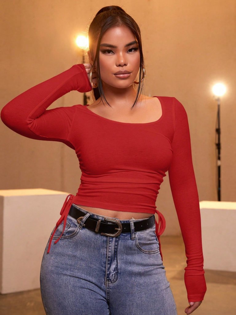 Kadın Kırmızı Kaşkorse Kumaş Bluz