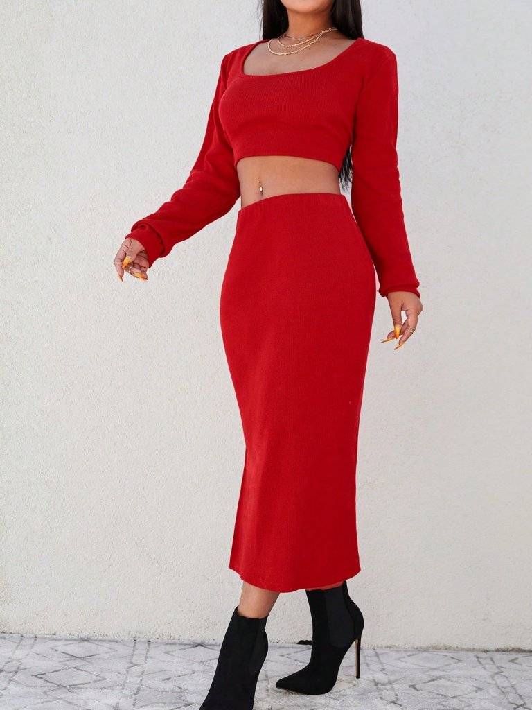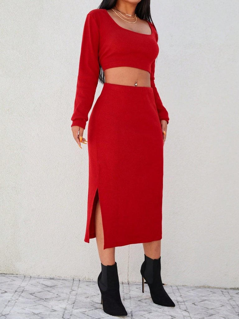 Kadın Kırmızı Kaşkorse Kumaş İkili Takım