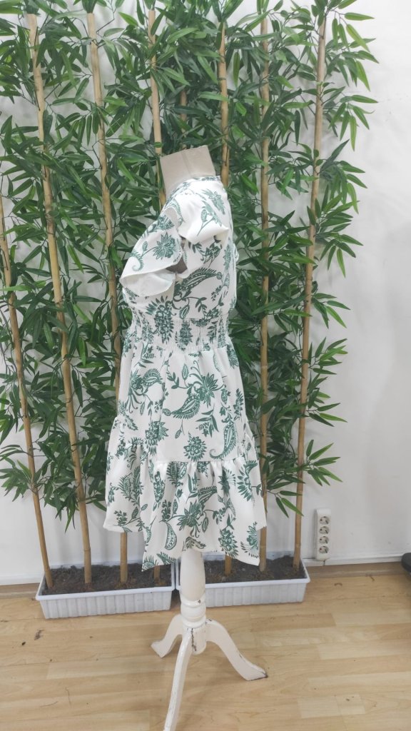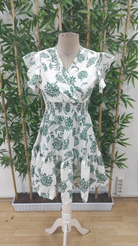 Kadın Kısa Fırfır Kollu Kruvaze Yaka çiçekli Atlas Elbise