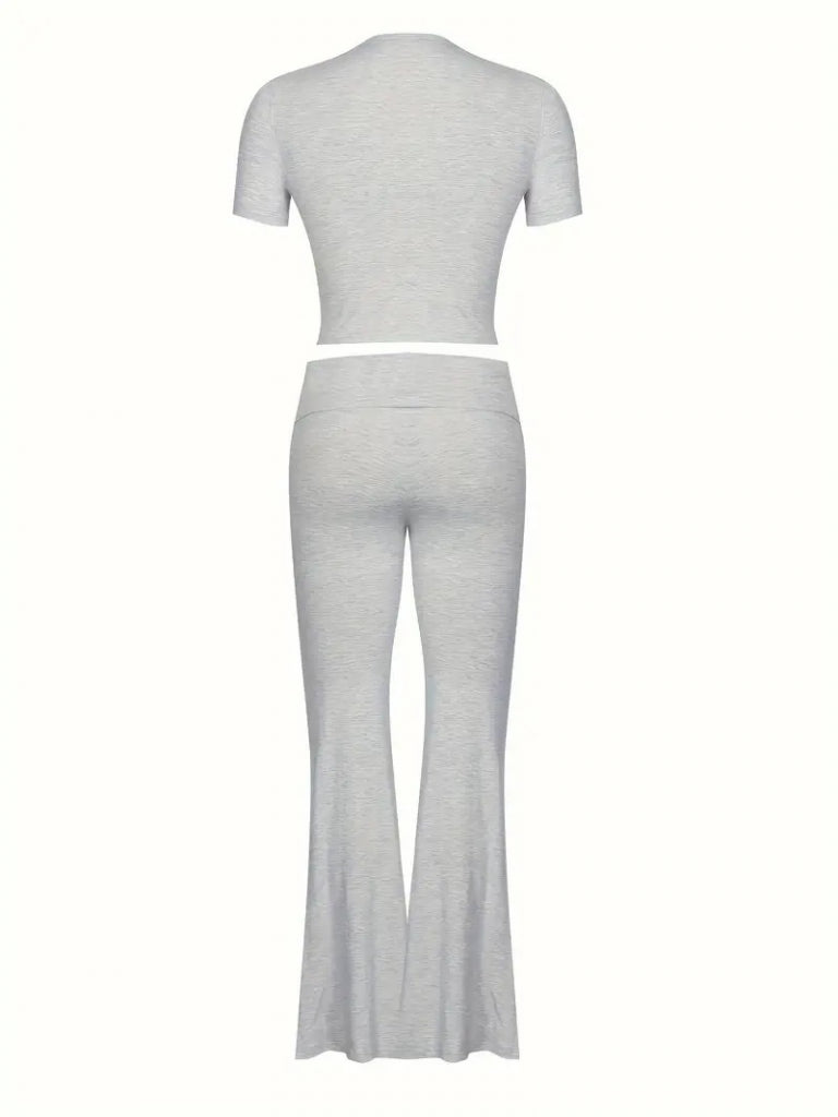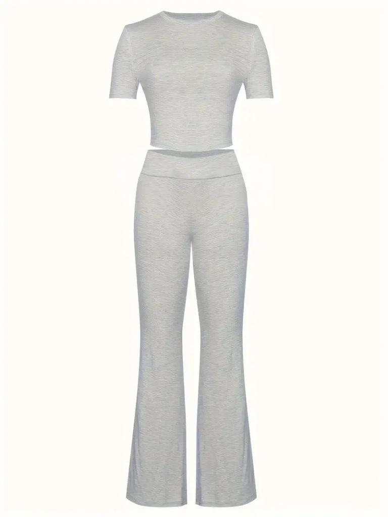 Kadın Kısa Kollu Bisiklet Yaka Alt Ispanyol Paça Viskon Ikili Takım