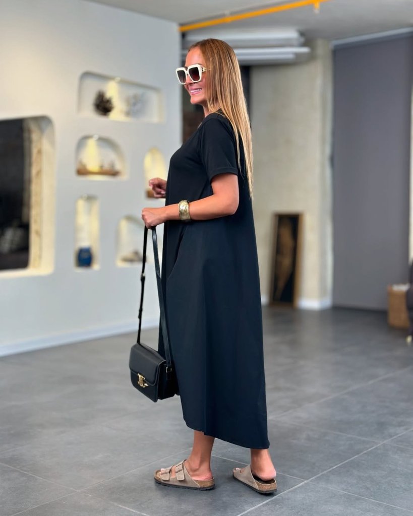 Kadın Kısa Kollu Bisiklet Yaka Asimetrik Kesim ön Viskon Arkası Trikoton Elbise