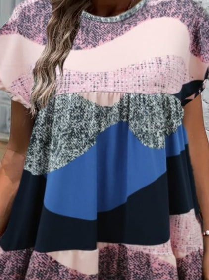 Kadın Kısa Kollu Bisiklet Yaka Kare Desenli Dalgıç Elbise
