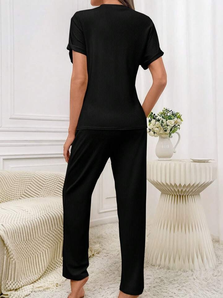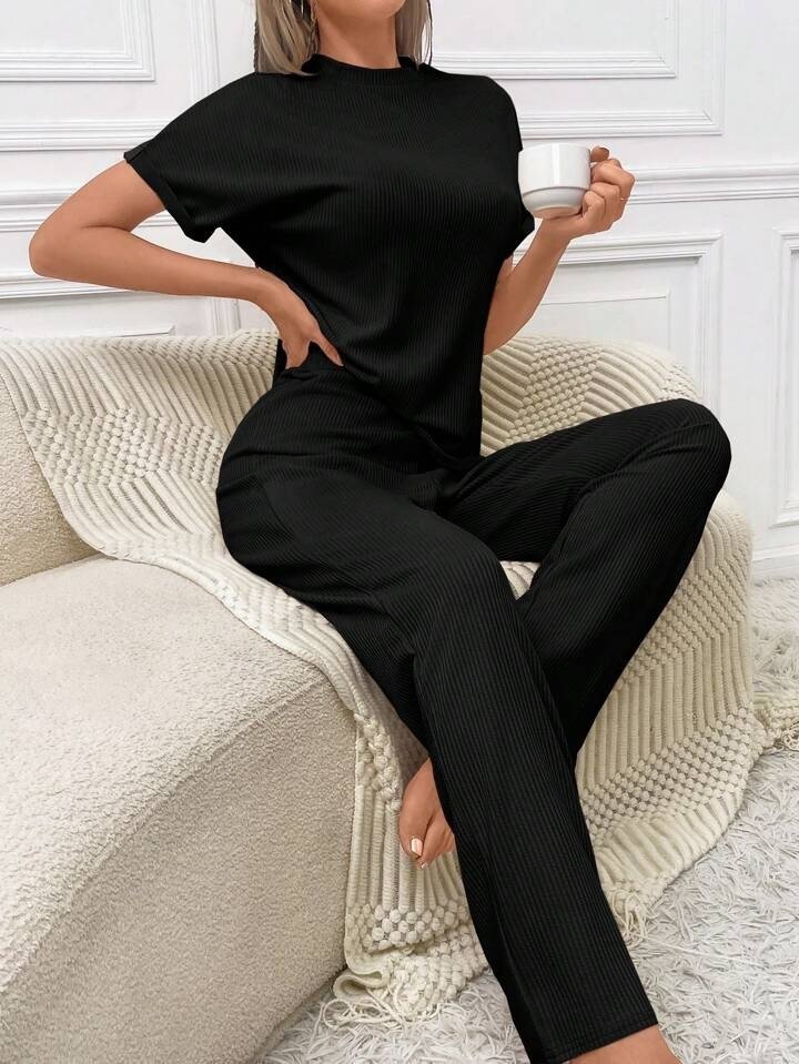 Kadın Kısa Kollu Bisiklet Yaka Kol Katlama Detay Kaşkorse Ikili Takım