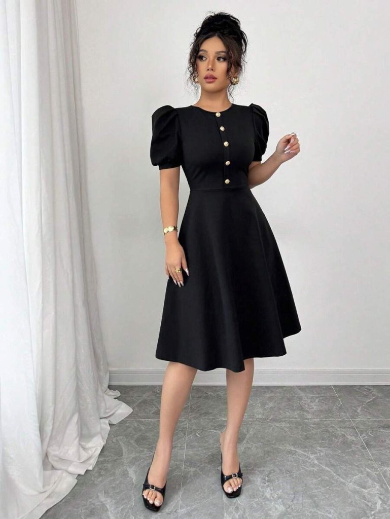 Kadın Kısa Kollu Bisiklet Yaka önden Düğmeli Ithal Krep Elbise