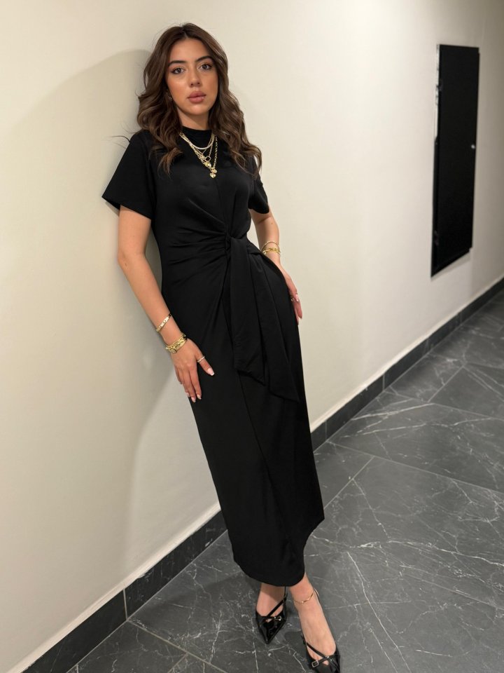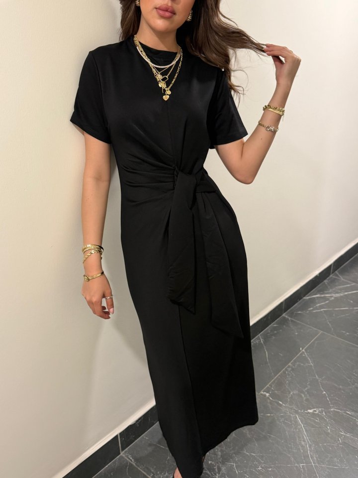 Kadın Kısa Kollu Bisiklet Yaka Yandan Bağlamalı Viskon Iki Iplik Elbise