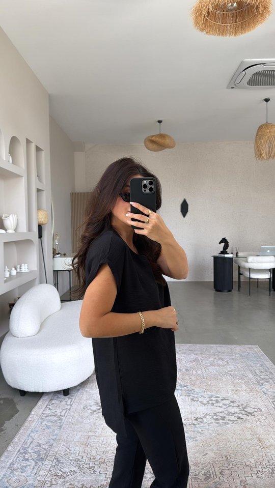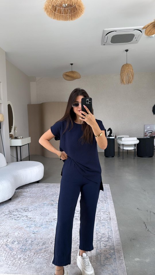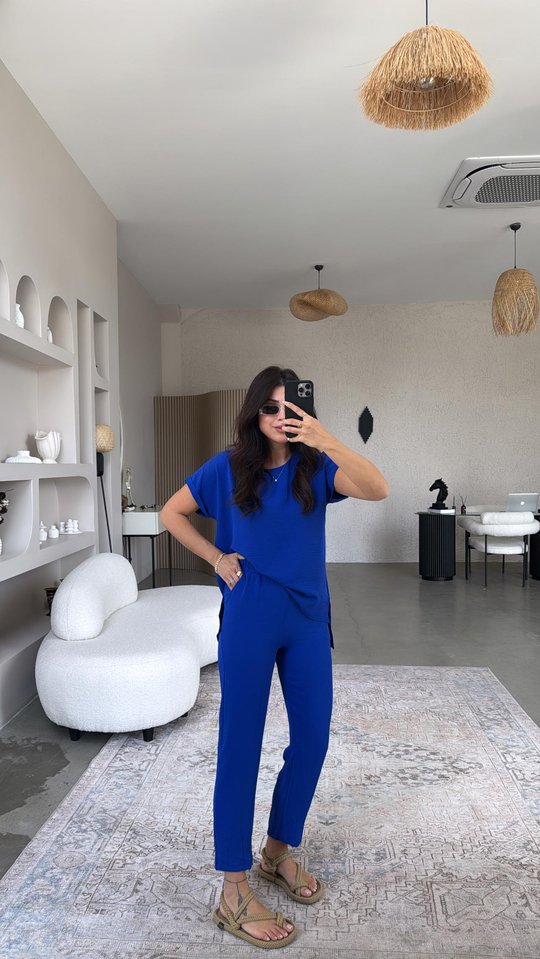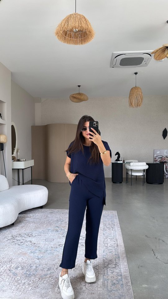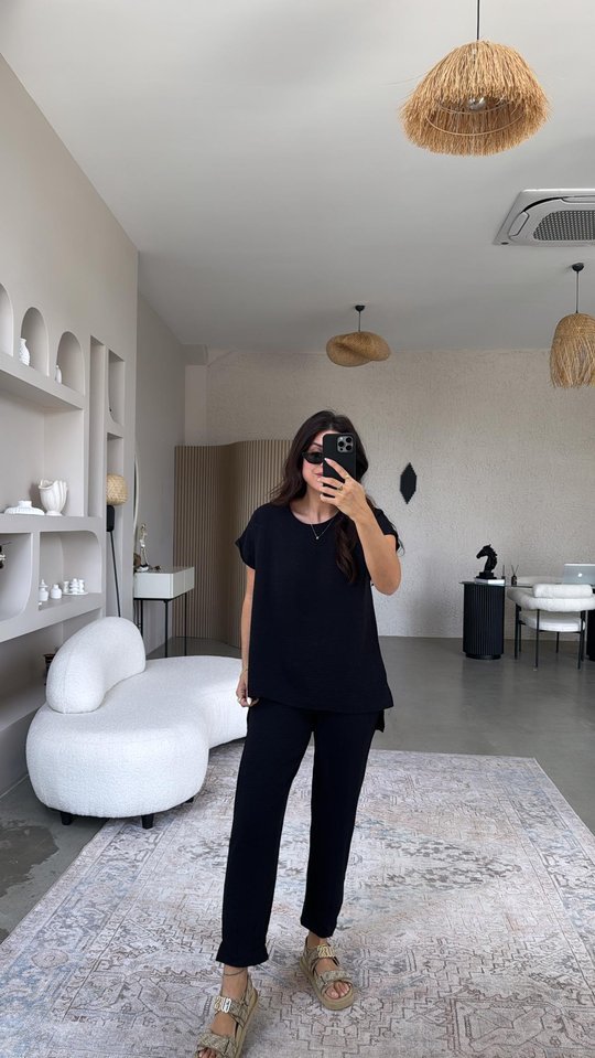 Kadın Kısa Kollu Bluz Ve Bileği Pens Detay Pantolon Ikili Takım