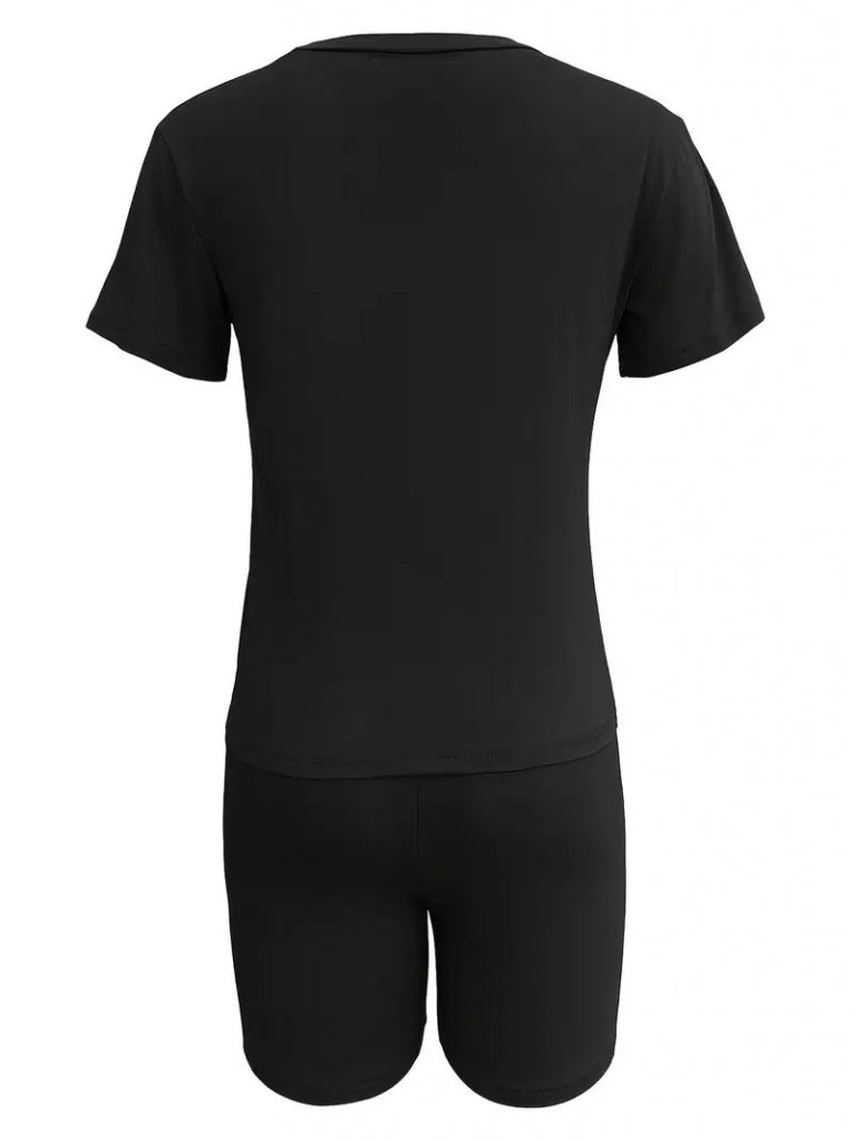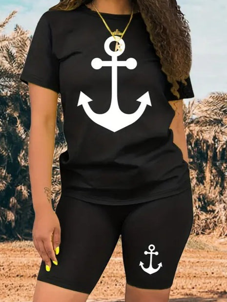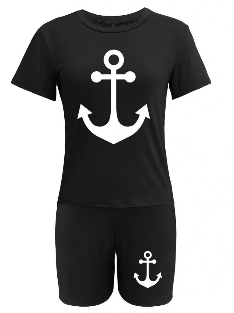 Kadın Kısa Kollu çapa Baskılı Viskon Ikili Takım