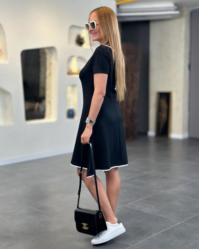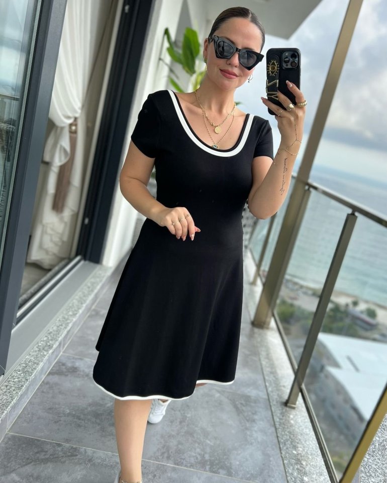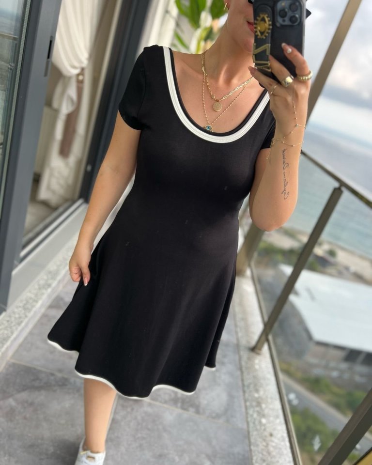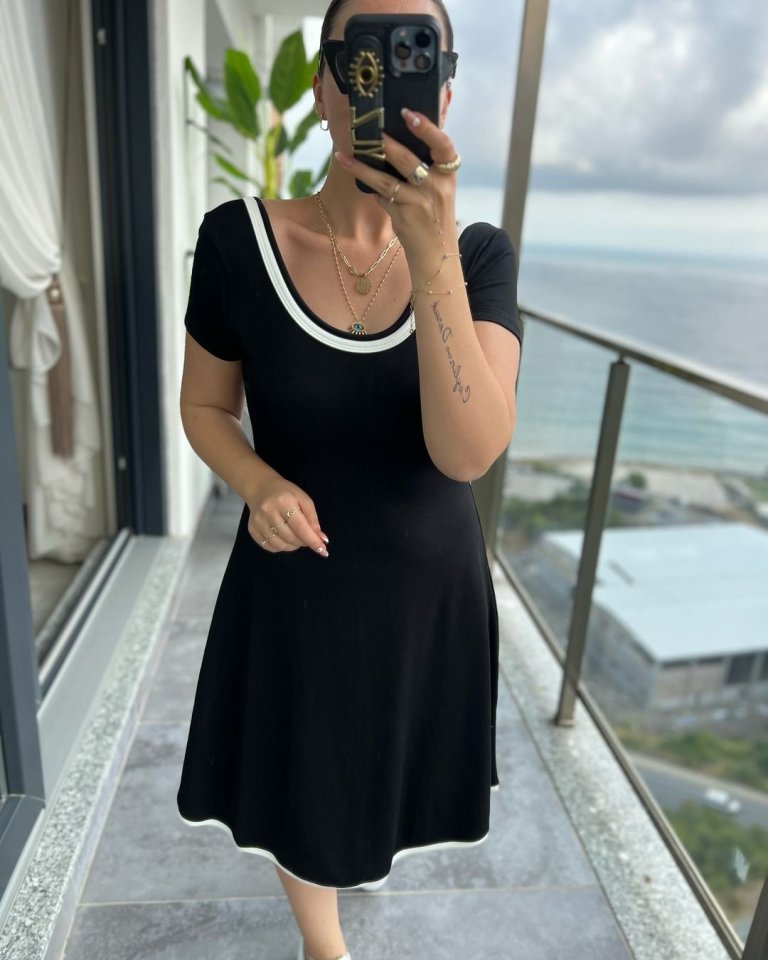 Kadın Kısa Kollu Geniş Yuvarlak Yaka Viskon Elbise