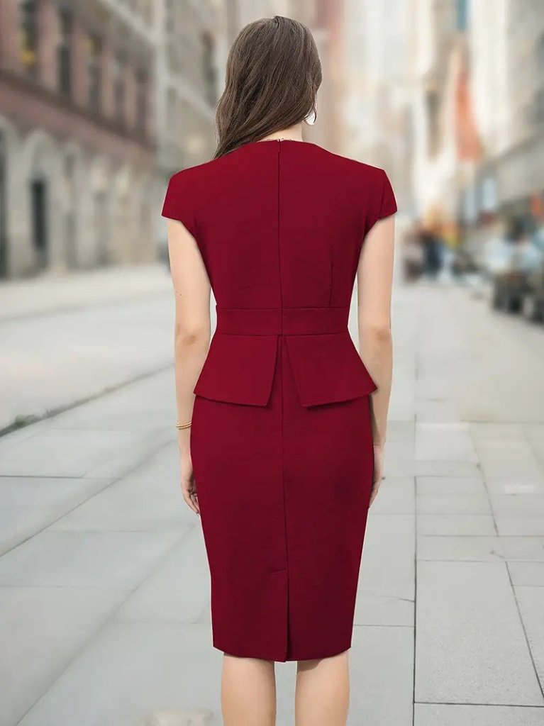 Kadın Kısa Kollu Kare Yakalı Ithal Krep Elbise