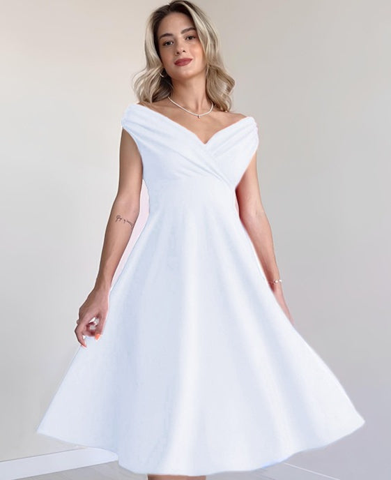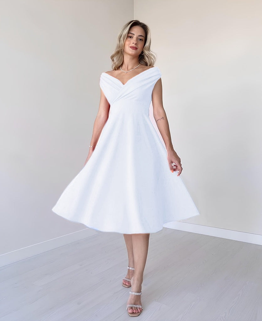 Kadın Kısa Kollu Kruvaze Yaka Eteği Volanlı Krep Elbise