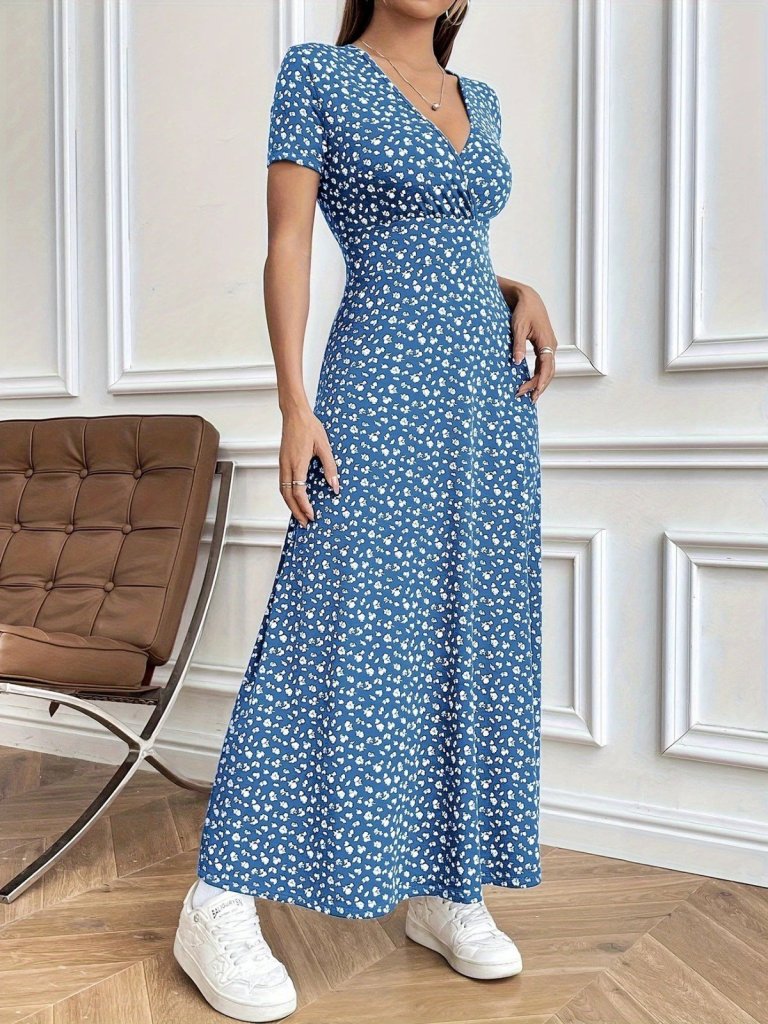 Kadın Kısa Kollu Kruvaze Yakalı çiçek Desenli Süprem Elbise
