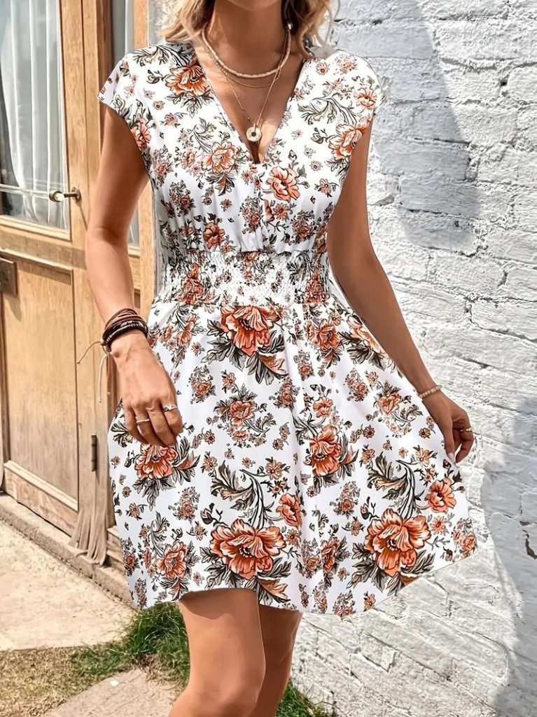 Kadın Kısa Kollu Kruvaze Yakalı çiçekli Desenli Süprem Elbise